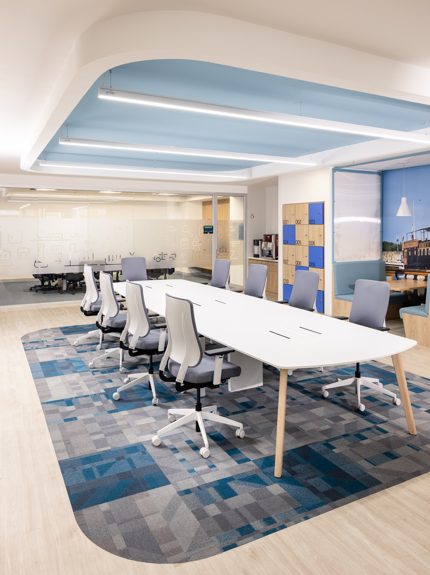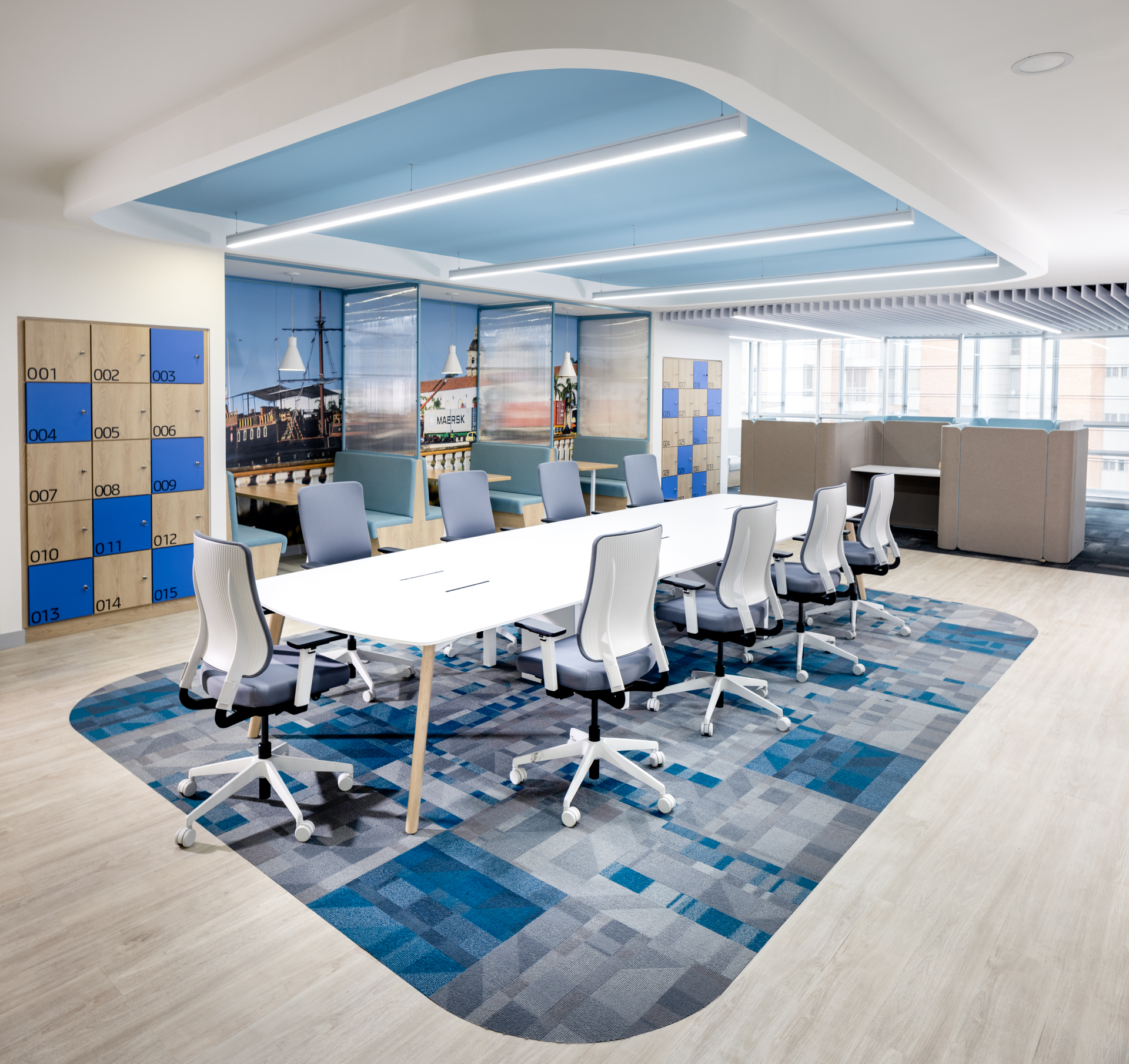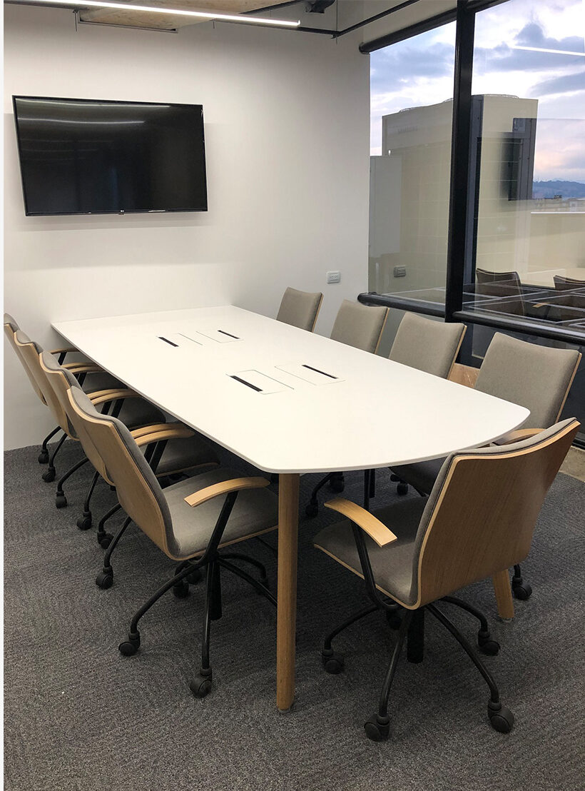 Completa colección de líneas orgánicas y sofisticadas. Se distingue por sus patas curvas en madera o laminado y el uso de un pórtico que no solo sirve de apoyo a las superficies, sino que provee todo el sistema mara manejo de cableado y conectividad, así como aloja los almacenamientos que se requieran. Sus versátiles pantallas y propuestas de divisiones entre los puestos de trabajo la hacen muy versátil y funcional.