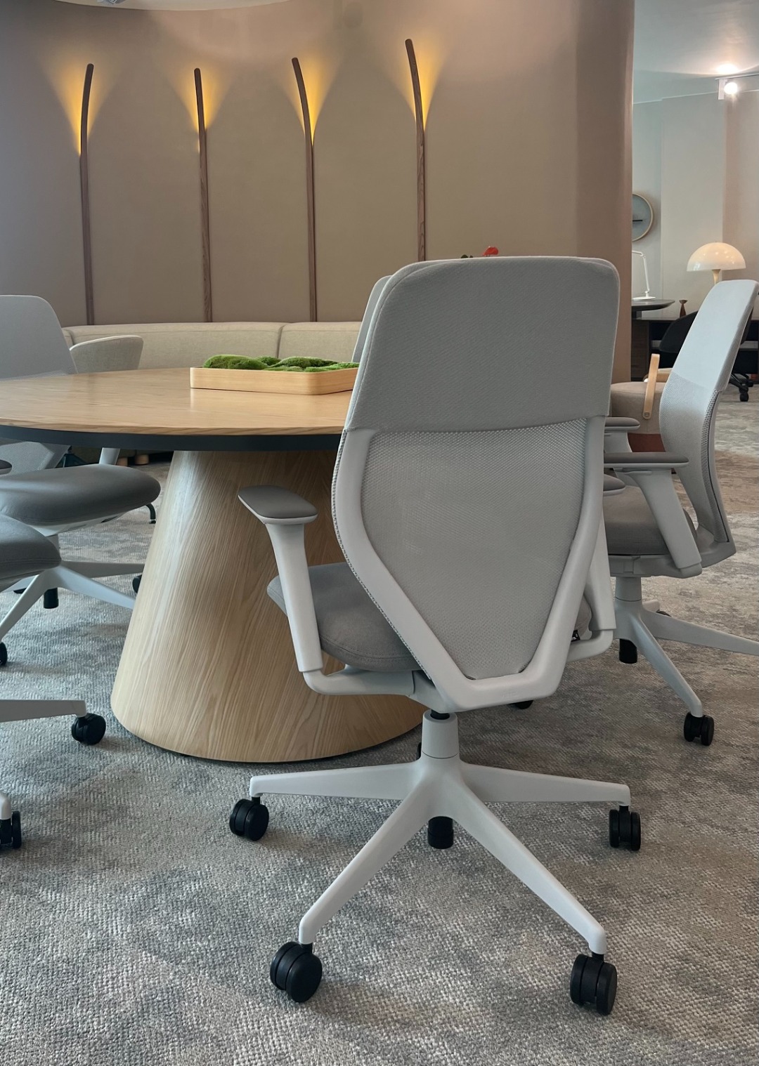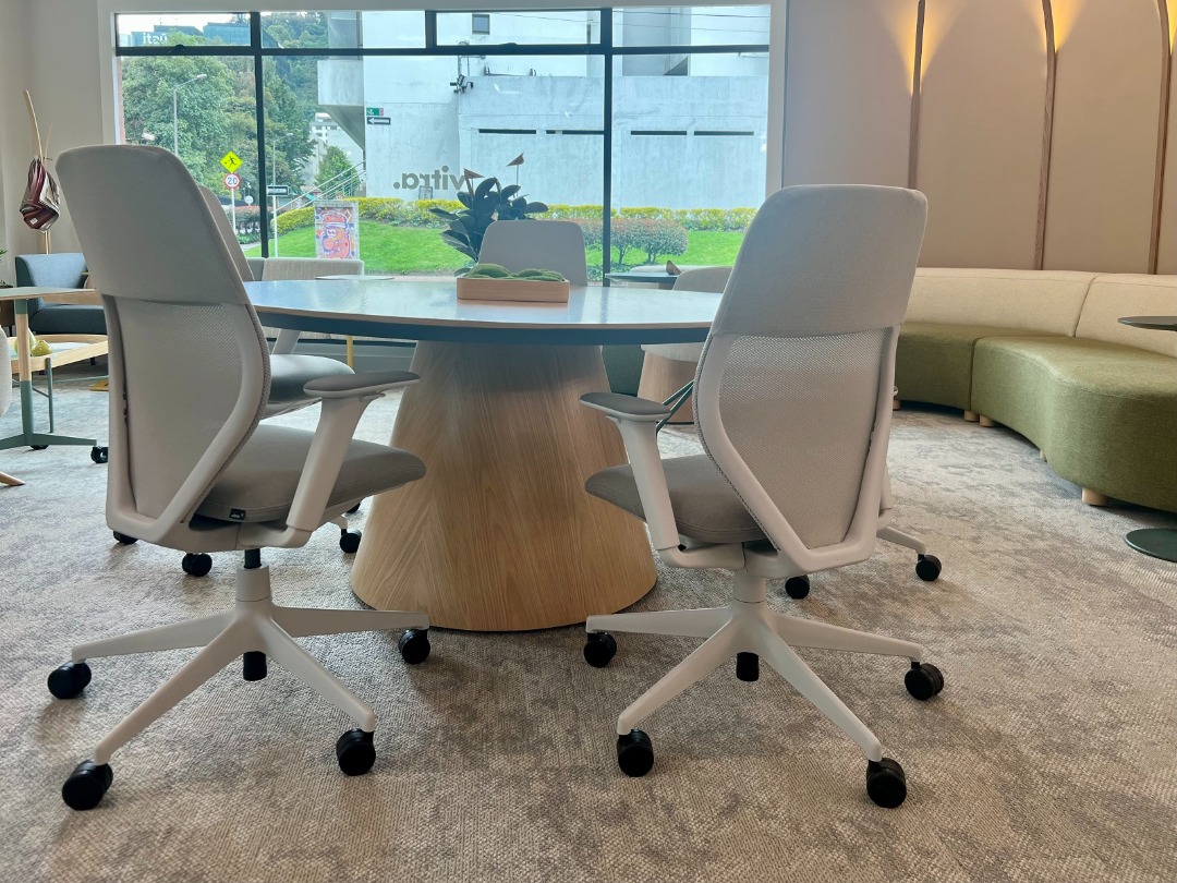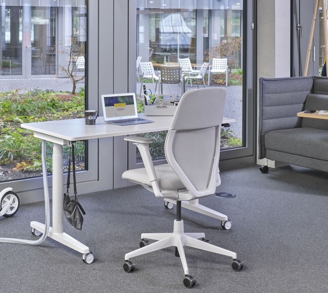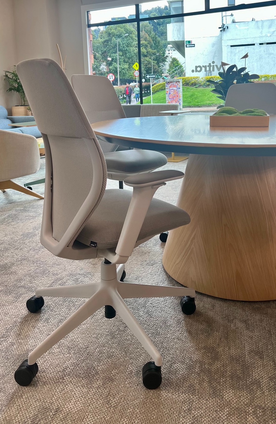ACX es la décima silla giratoria de oficina que Vitra ha desarrollado con el diseñador italiano Antonio Citterio. Con su mecanismo sincronizado automático que se ajusta a diferentes pesos, ACX ofrece la máxima comodidad para todos los usuarios, y está fabricada en gran parte con materiales reciclados y es reciclable. Su respaldo tiene una funda de tejido de punto. El tejido de malla semitransparen­te está fabricado con poliéster reciclado y se ofrece en varios colores que, combina­dos con un bastidor claro u oscuro, permiten diversas variantes.