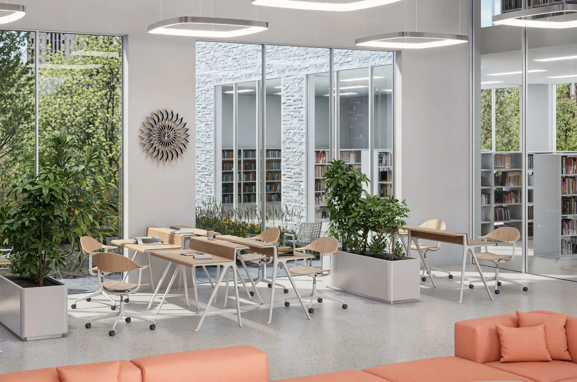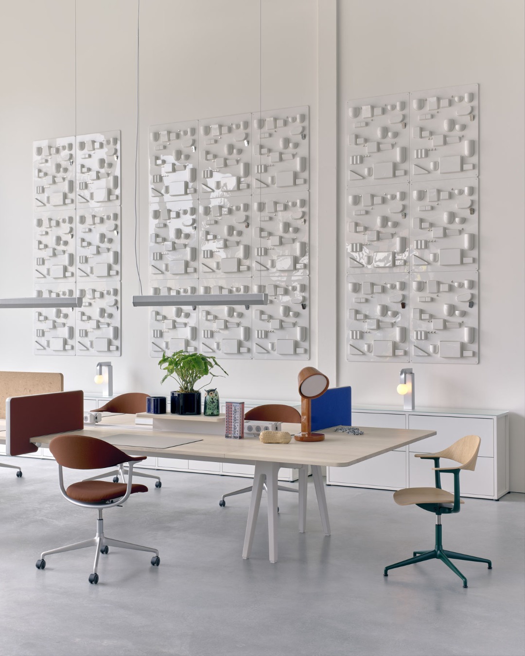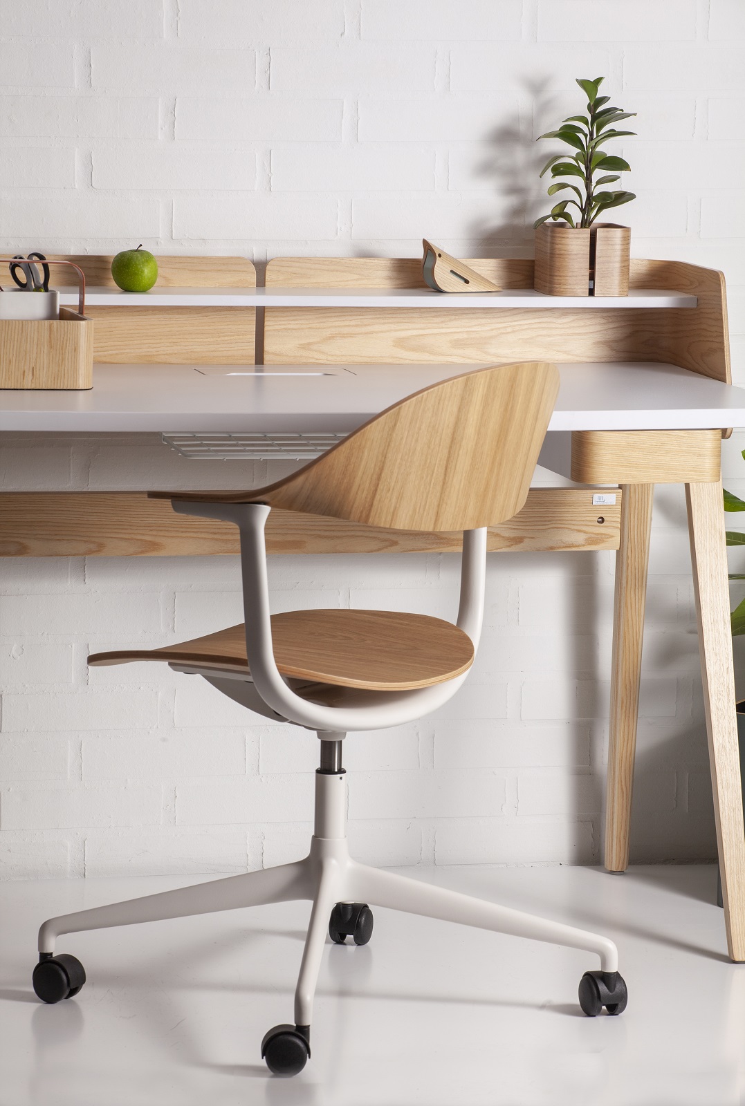 La silla Mynt de Erwan Bouroullec combina la estética hogareña de una silla de estudio con el dinamismo ergonómico de una silla de oficina. Su mecanismo se activa con el peso del cuerpo y se inclina hacia delante o hacia atrás con cambios de postura de la persona sentada. Ideal para cualquier tarea y espacio, aporta una nueva forma de sentarse en los espacios de trabajo o en casa.