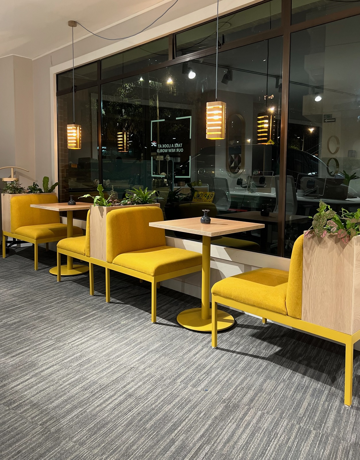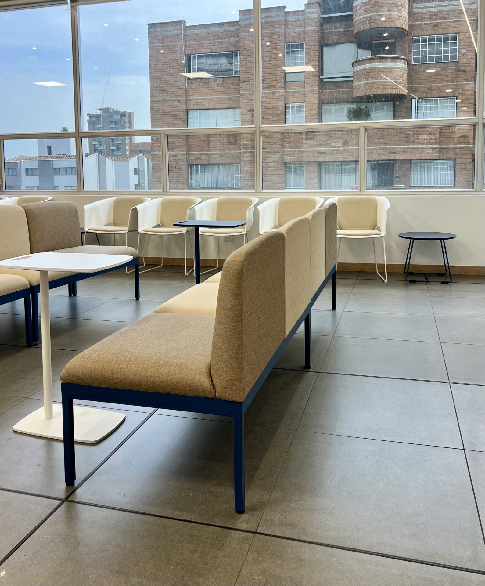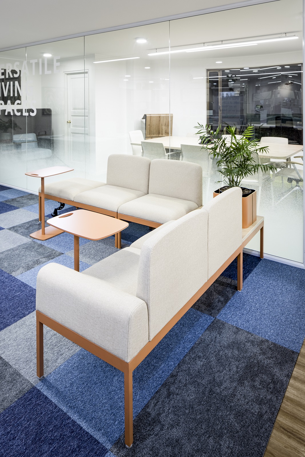 Nuuva es una propuesta fresca y liviana que destaca por su confort. Apta para salas de espera, espacios de trabajo, áreas pequeñas multifuncionales. Tiene la posibilidad de tener brazos con o sin conectividad y de agregar contenedores para matas, trayendo así la naturaleza al interior de los espacios